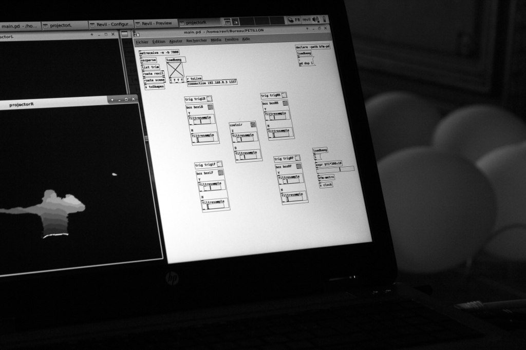 Environnement logiciel: Ableton Live, NI Reaktor (Blinksonic), MaxMsp, Pd, Revil.