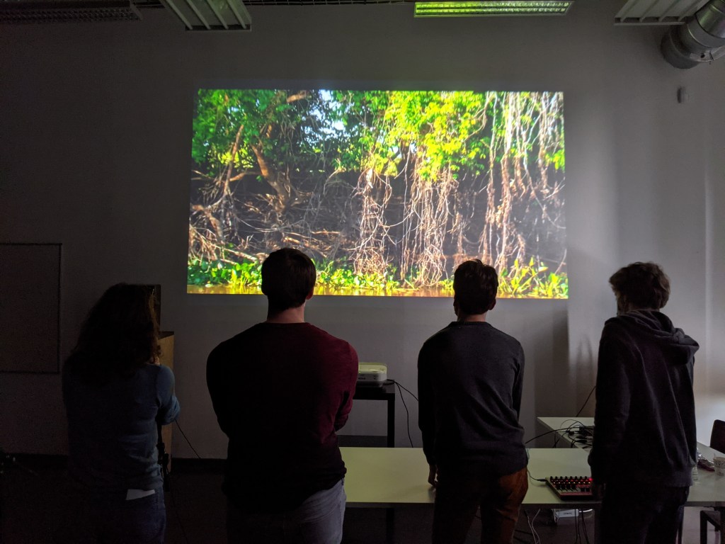 Sous forme d’atelier ou d’installation, je propose via ce jeu/dispositif d’incarner de façon réaliste différents animaux: leurs cris, leurs déplacements mais aussi leur écosystème et sa météo, en temps réel et un peu à la façon d’une performance musicale collective.