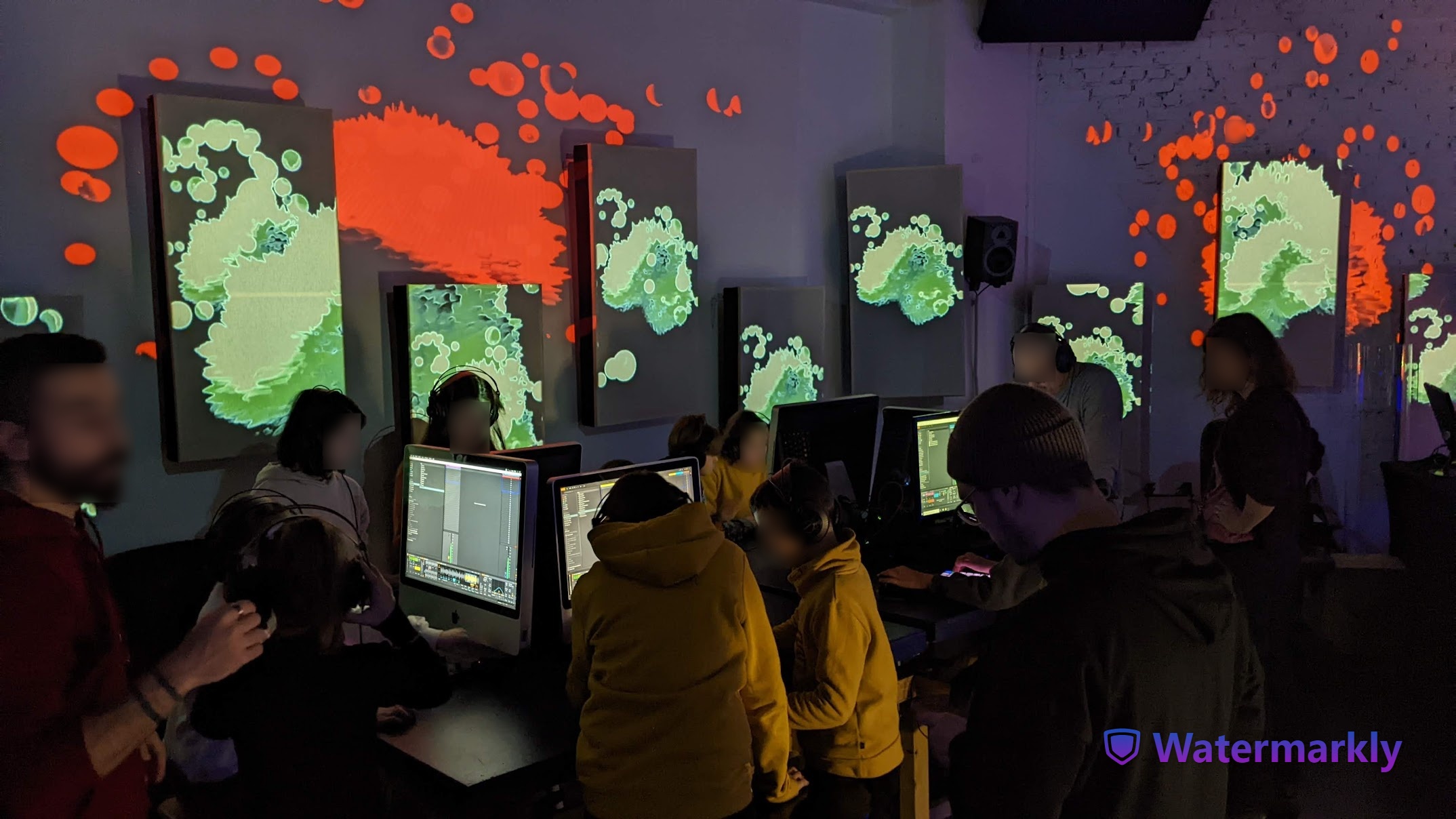 Dans cet atelier, parents et enfants ont pu se lancer dans une bonne heure de création collective, visuelle et sonore.